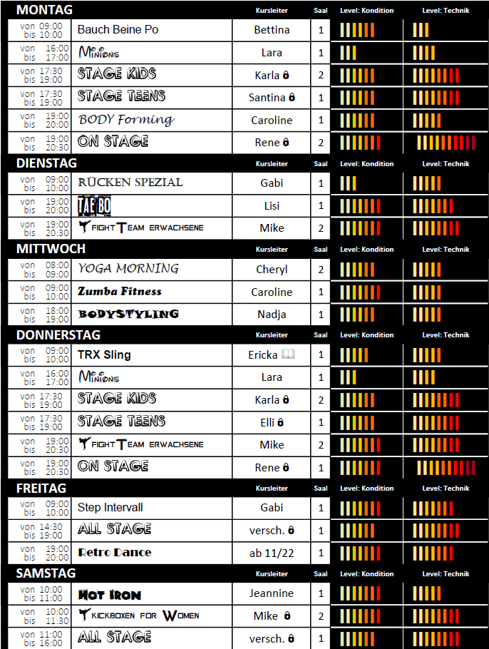 TRAININGSZEITEN DANCE ELITE